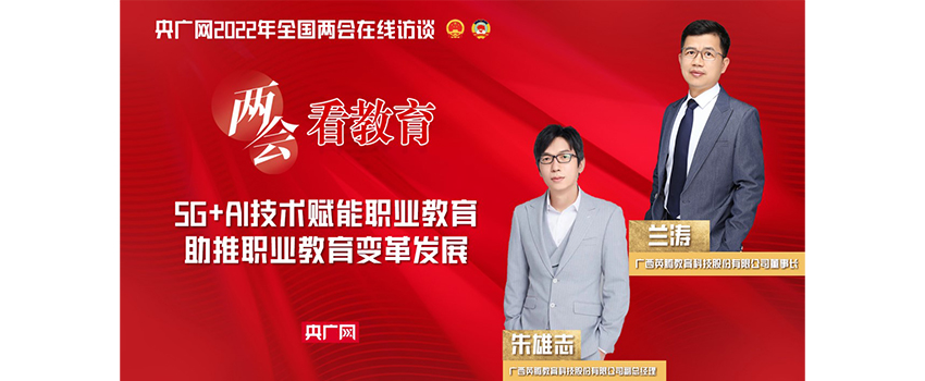 教育兴则国家兴,教育强则国家强。在2022年全国两会召开之际,央广网邀请全国人大代表、政协委员、教育专家,做客央广网,一起看教育。3月11日,央广网对话广西英腾教育科技股份有限公司董事长兰涛、副总经理朱雄志,共同探讨《5G+AI技术赋能,助推职业教育变革发展》。